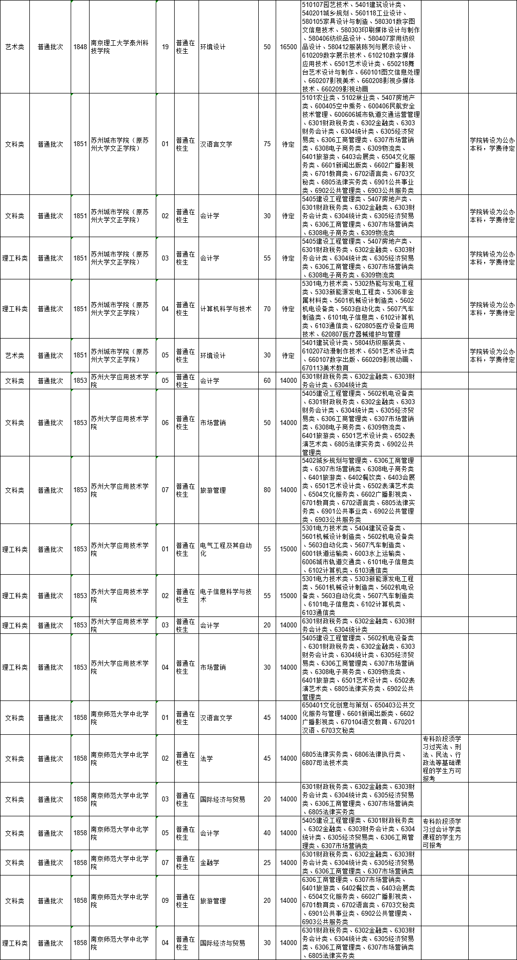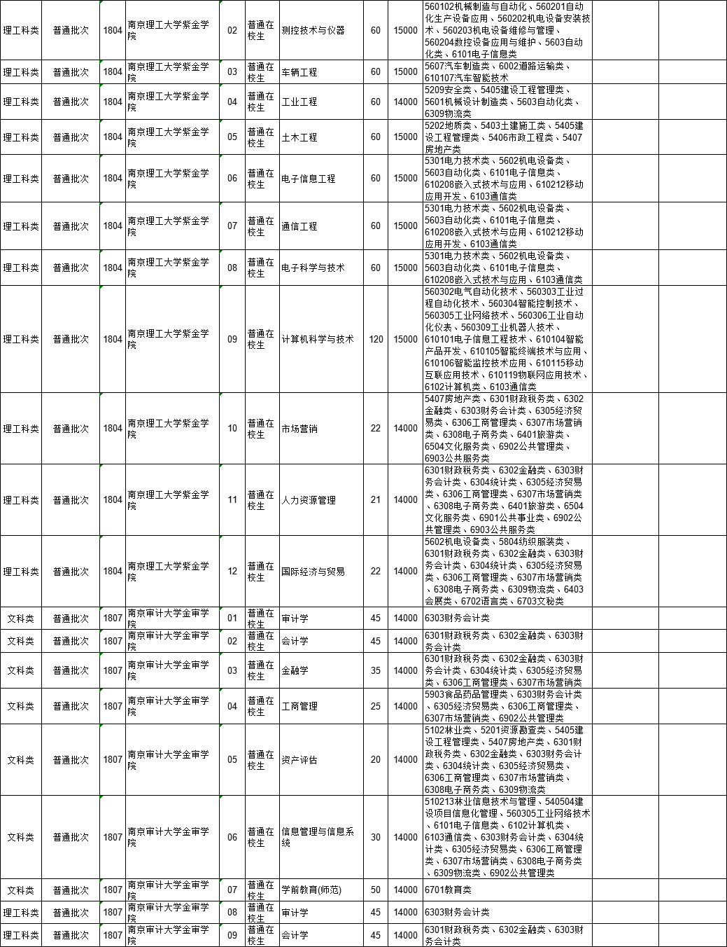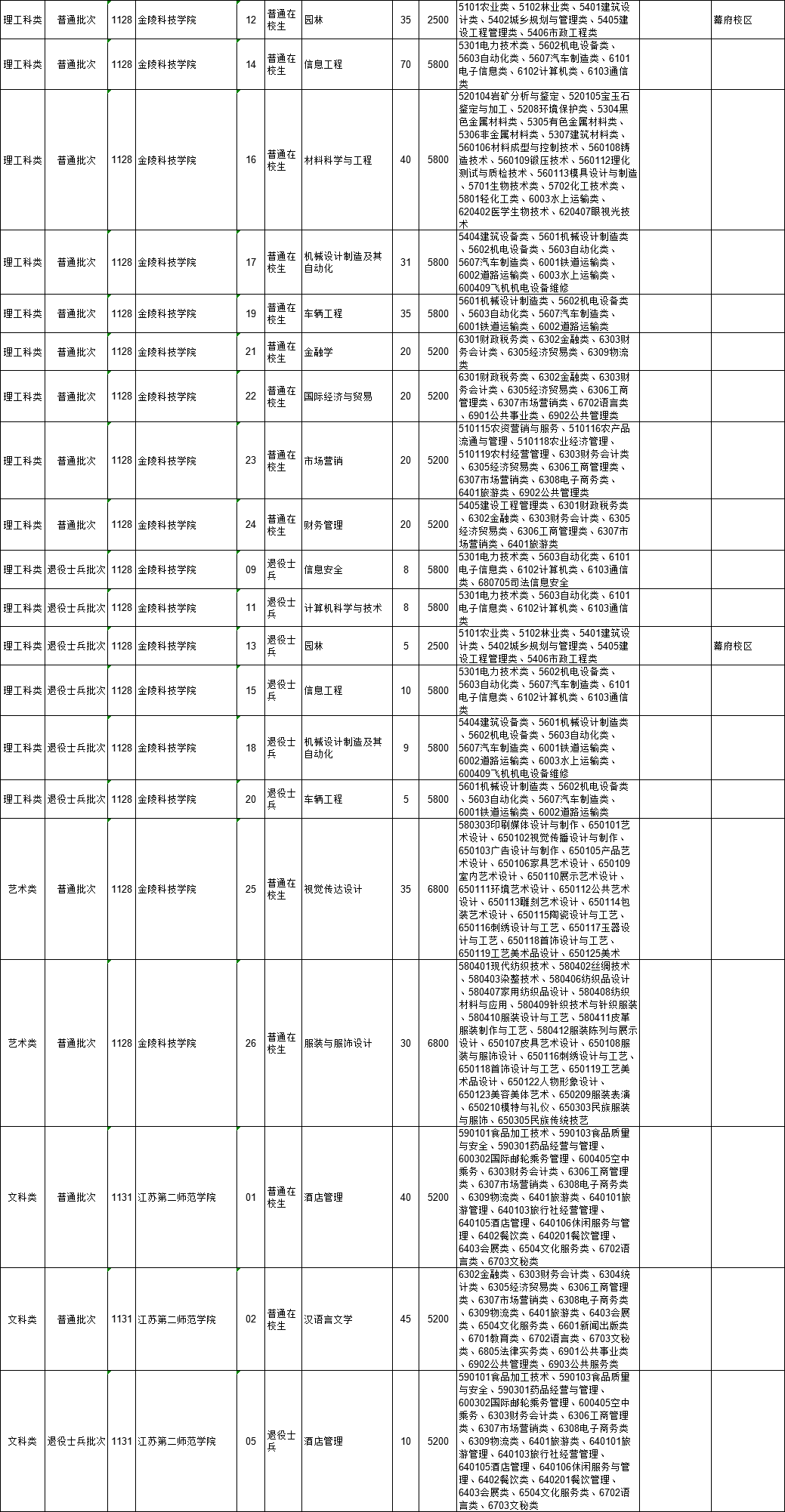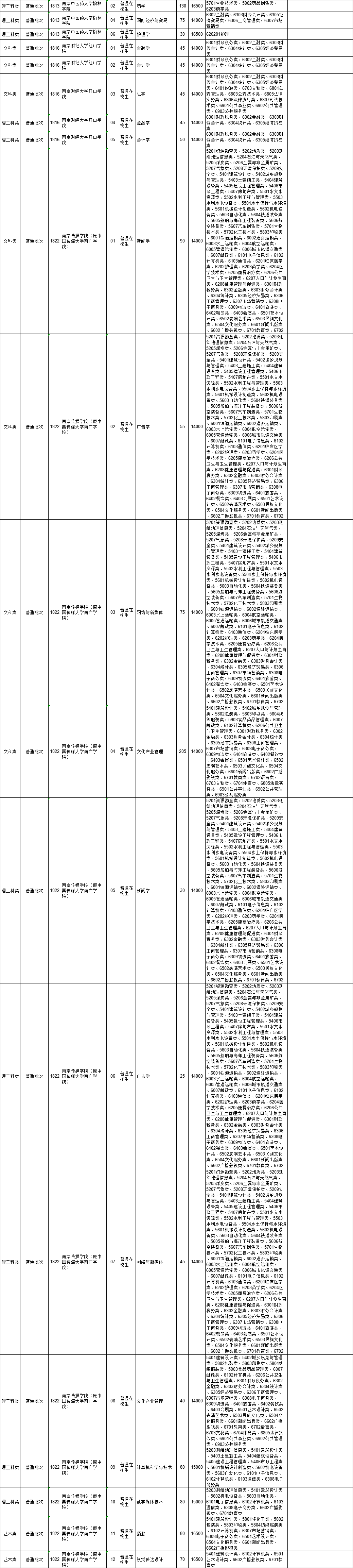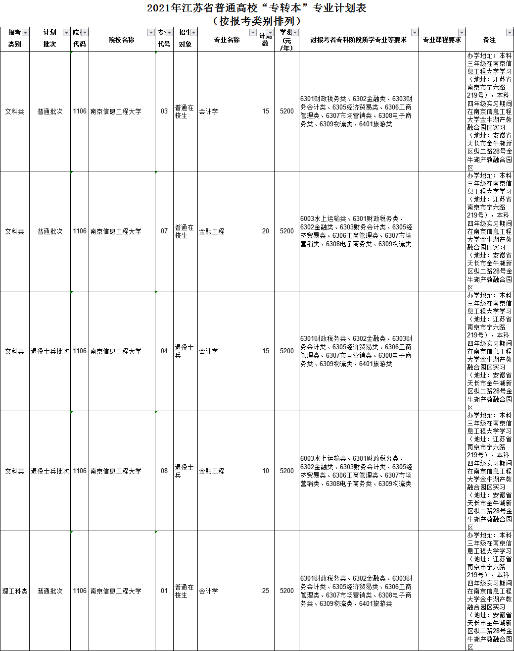 2021年江苏省普通高校“专转本”专业计划表(按报考类别排列)