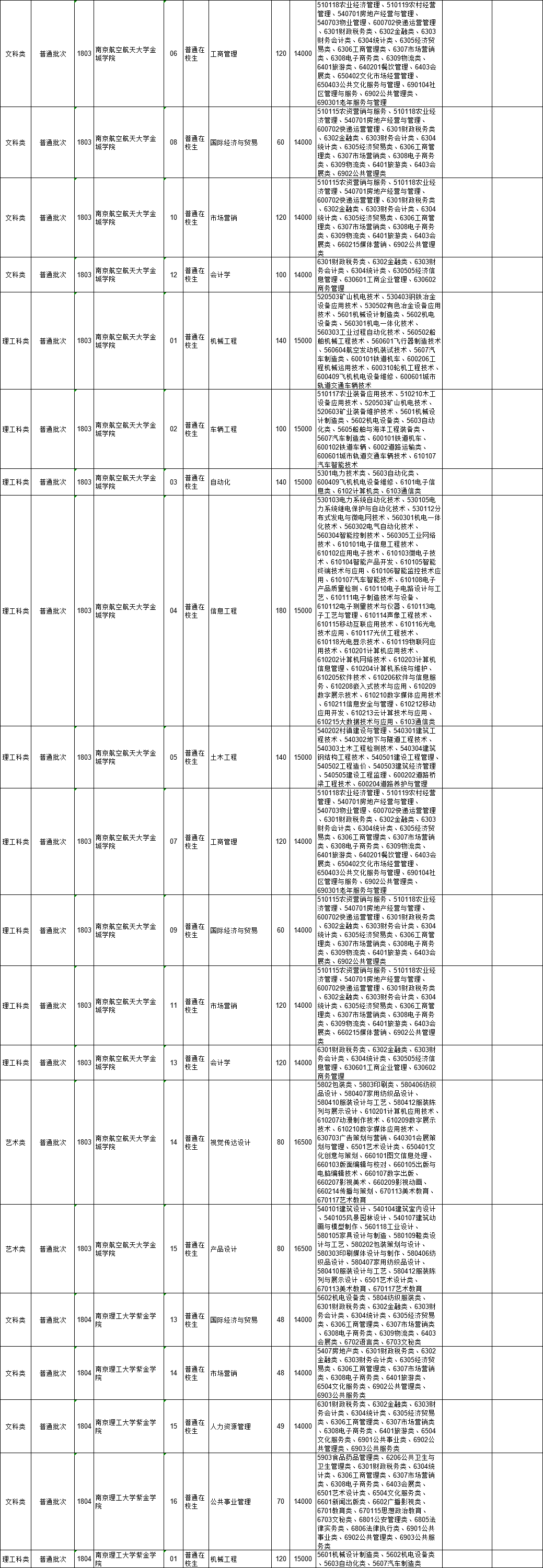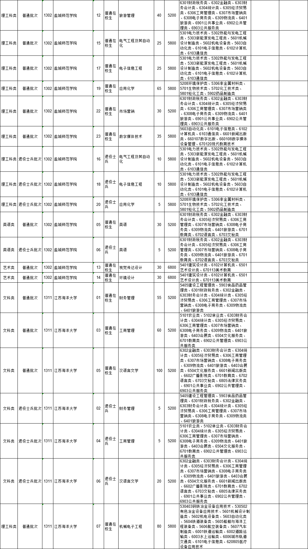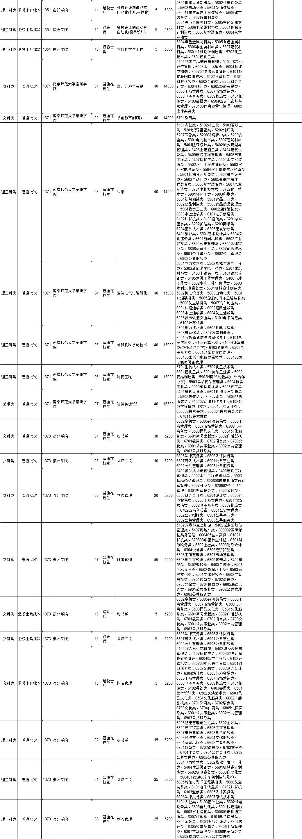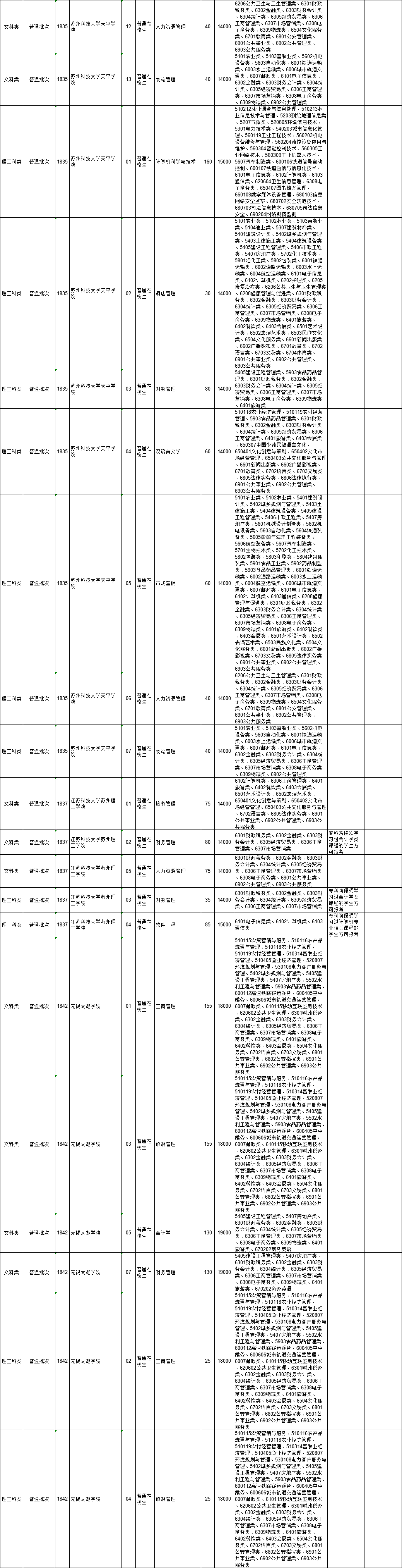 2021年江苏省普通高校“专转本”专业计划表(按报考类别排列)