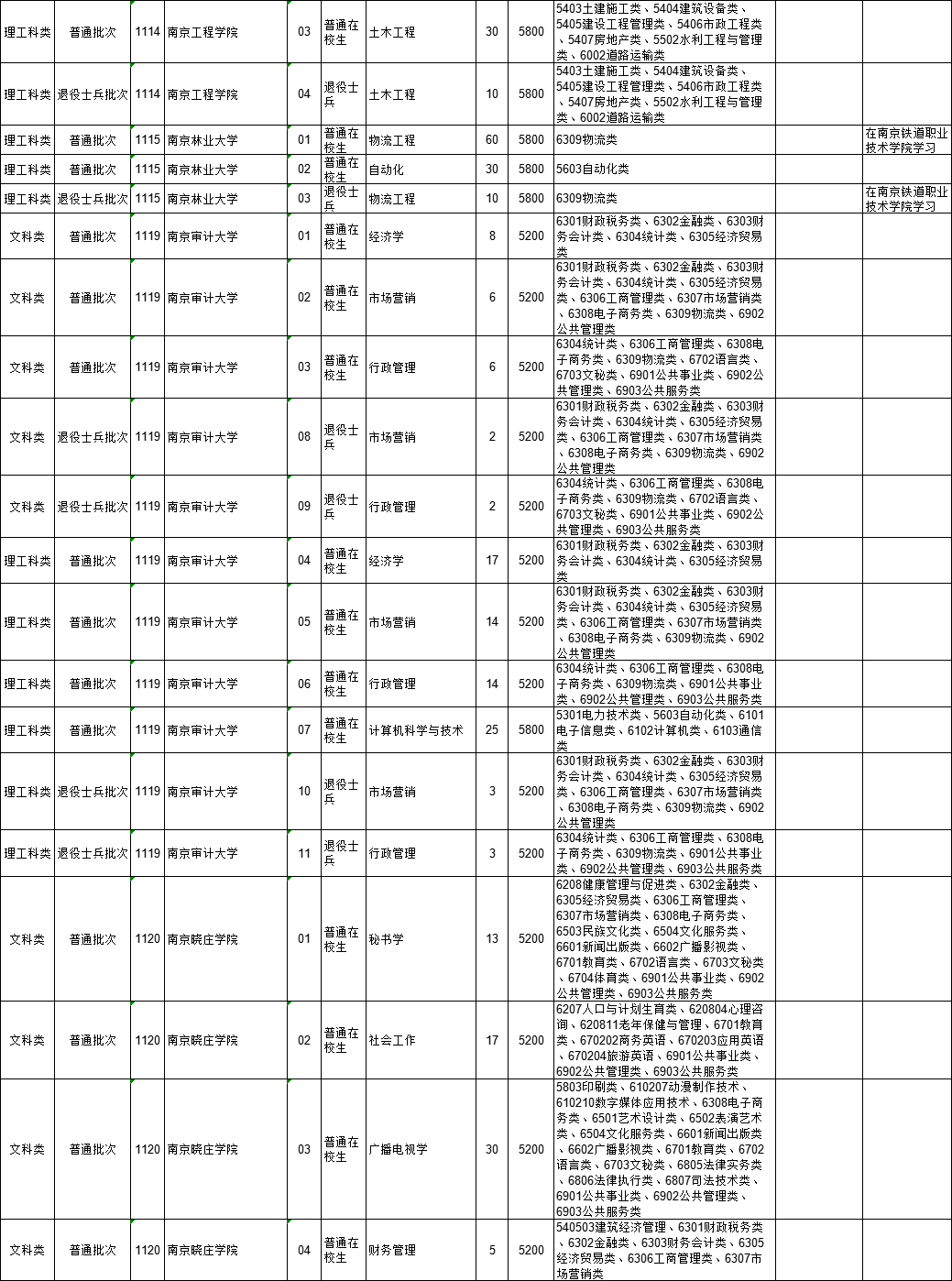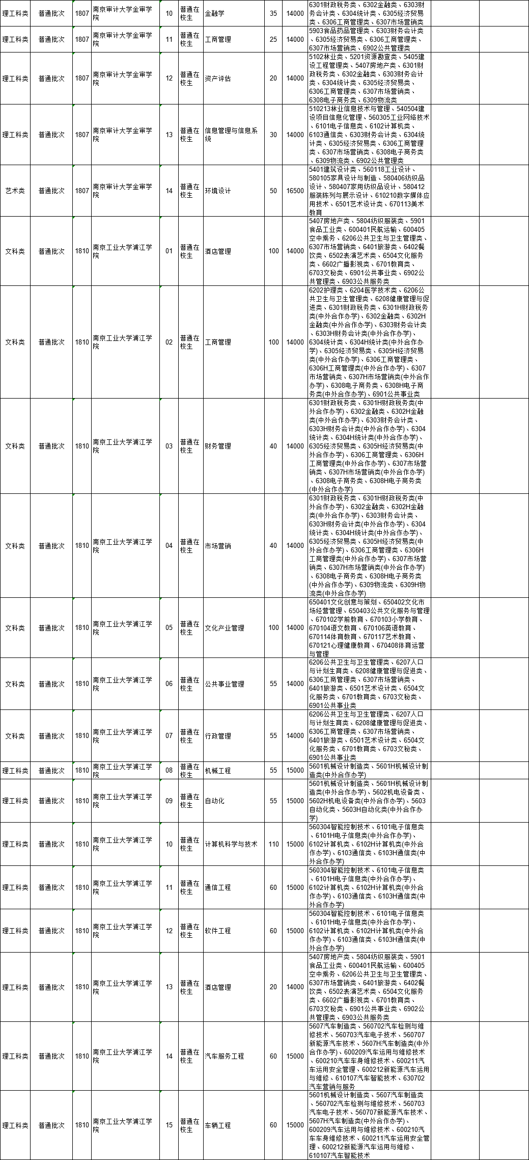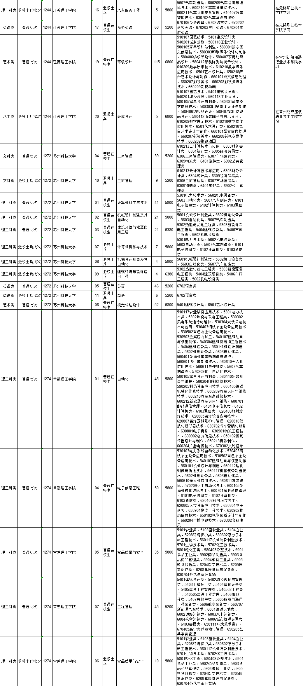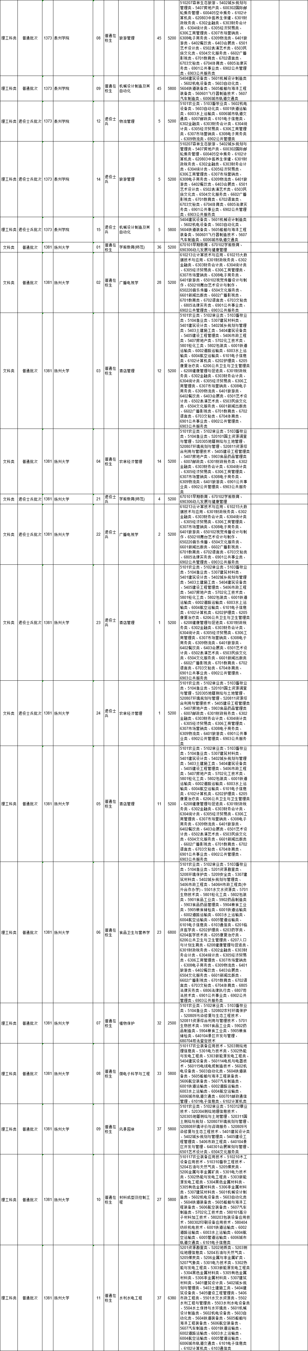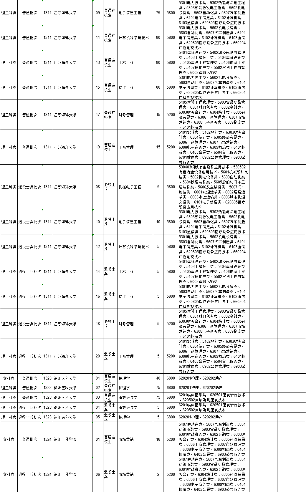 2021年江苏省普通高校“专转本”专业计划表(按报考类别排列)