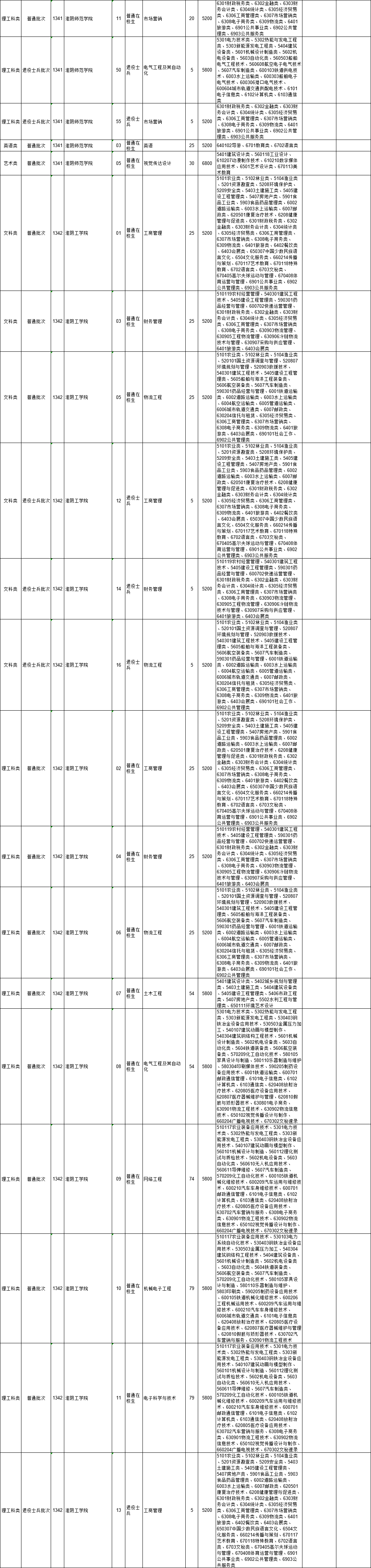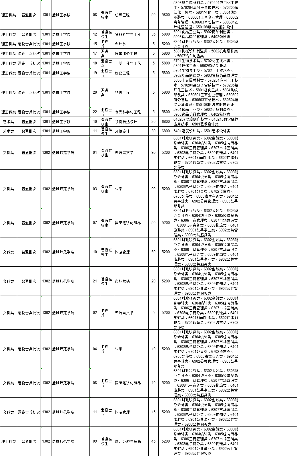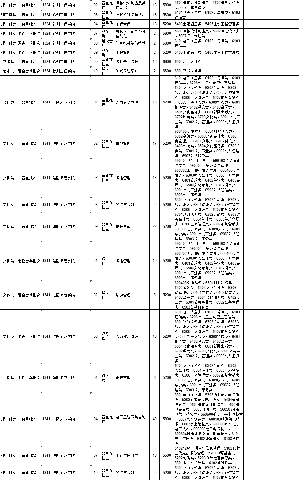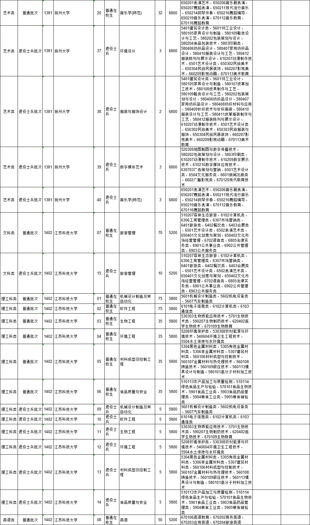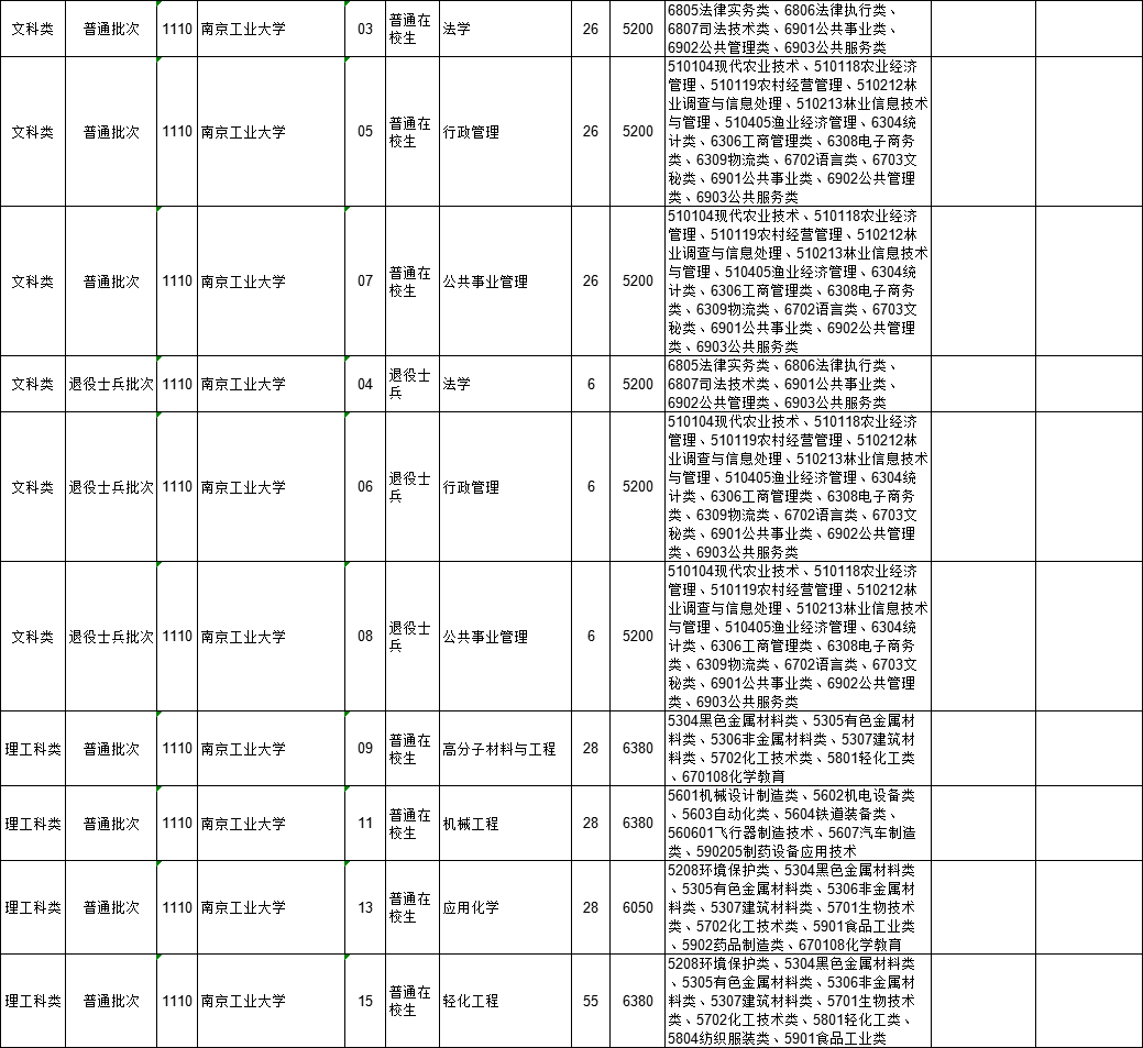 2021年江苏省普通高校“专转本”专业计划表(按报考类别排列)