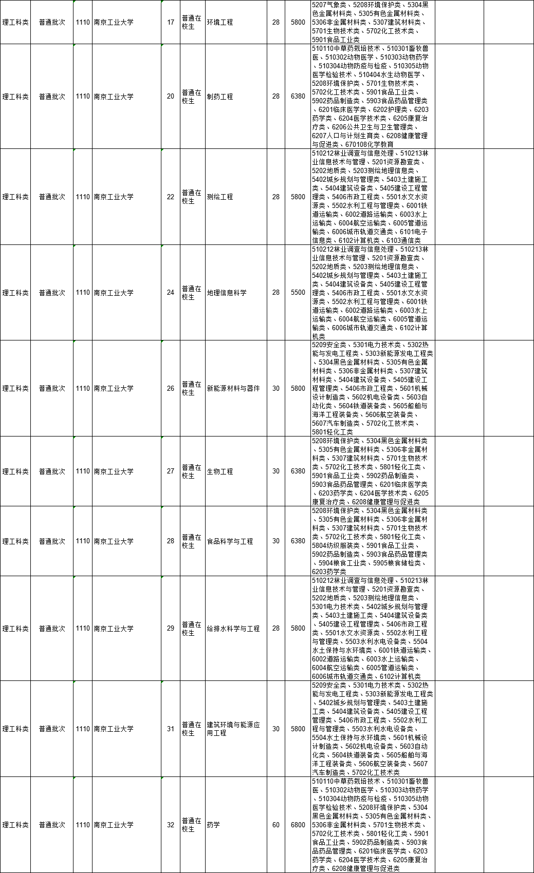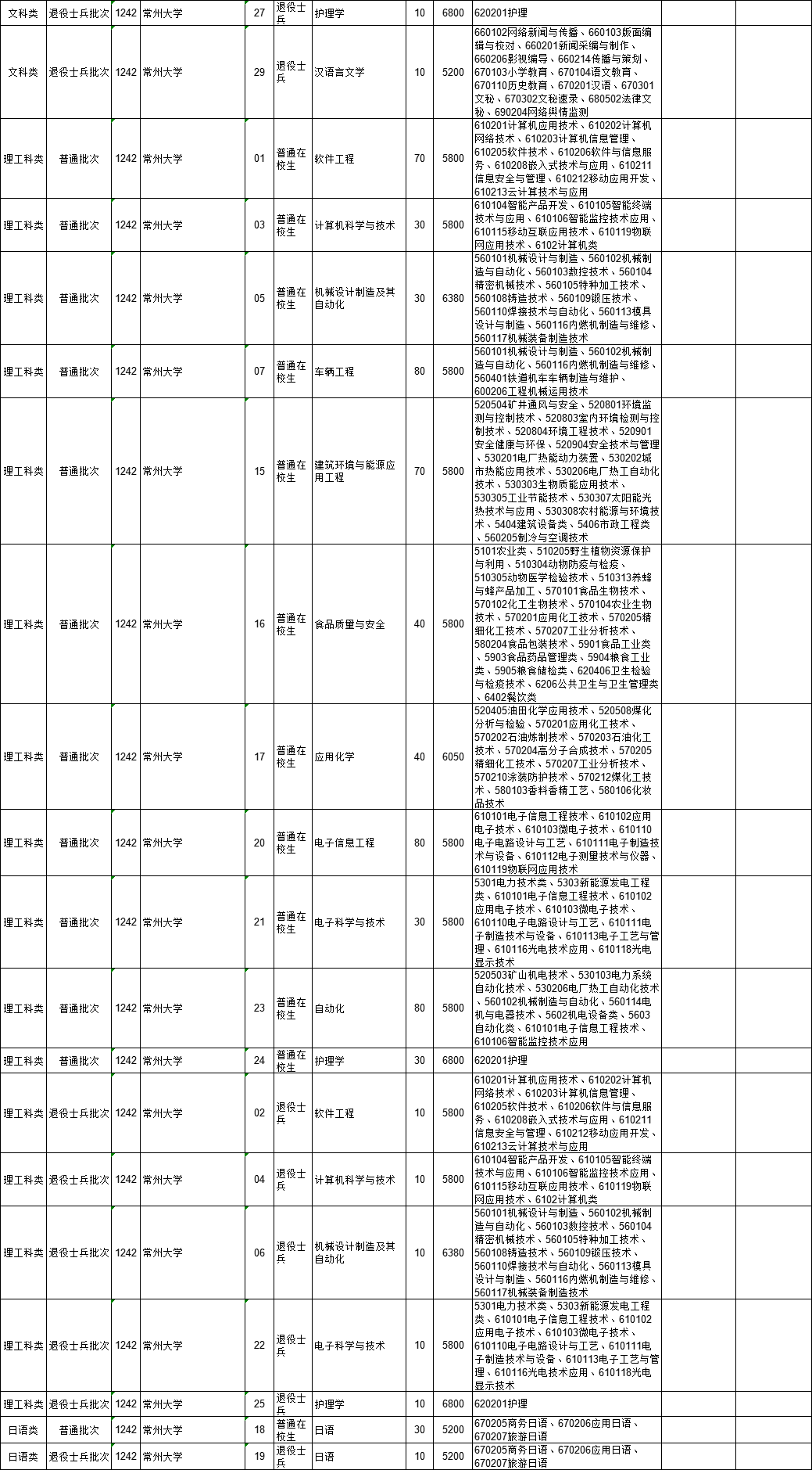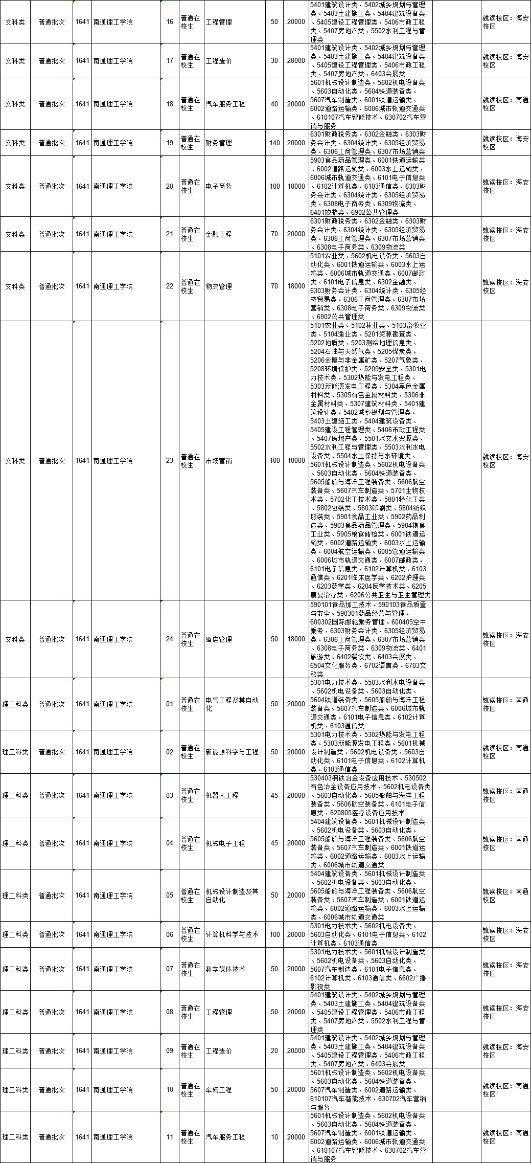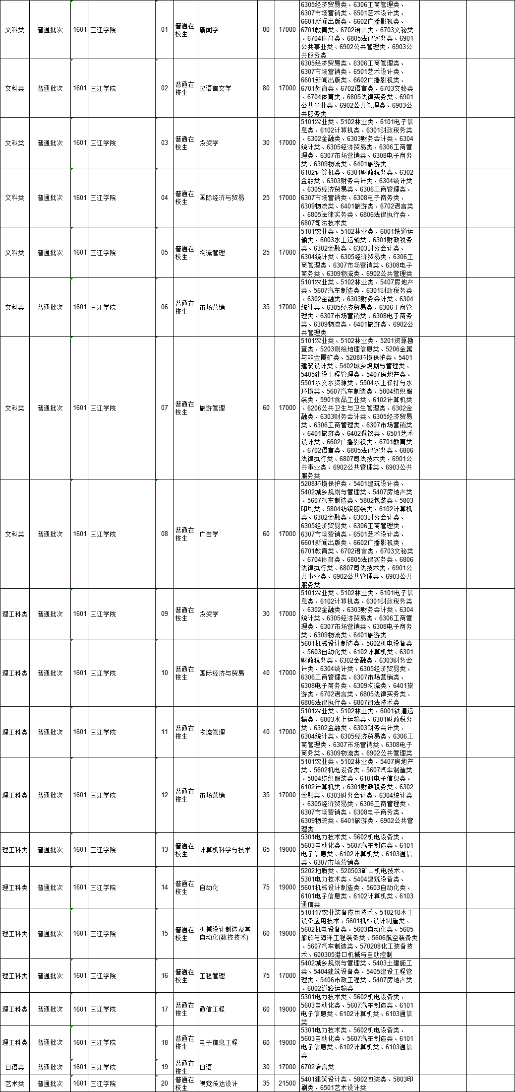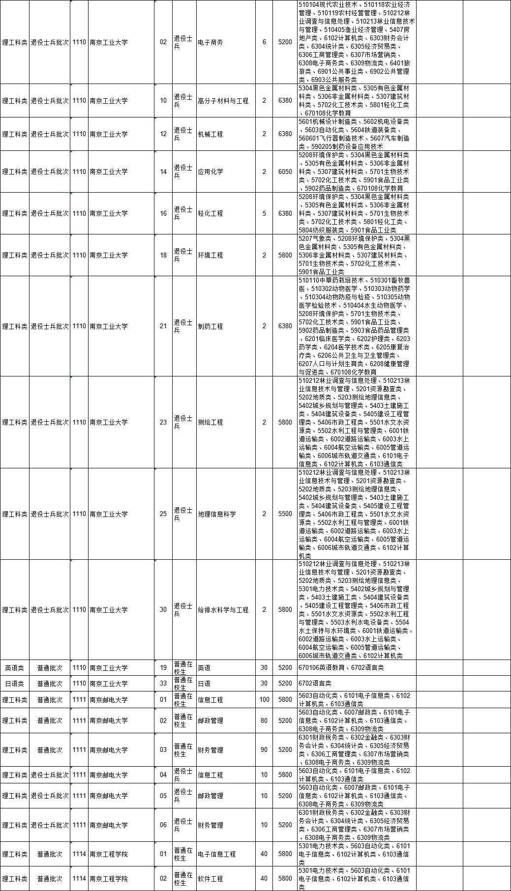 2021年江苏省普通高校“专转本”专业计划表(按报考类别排列)