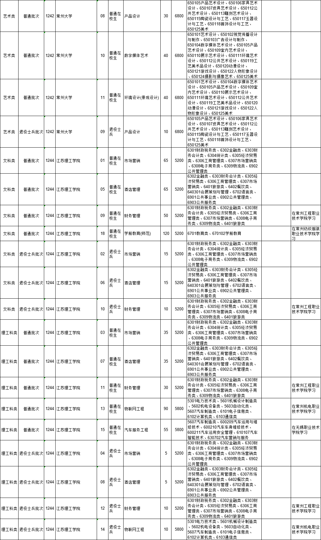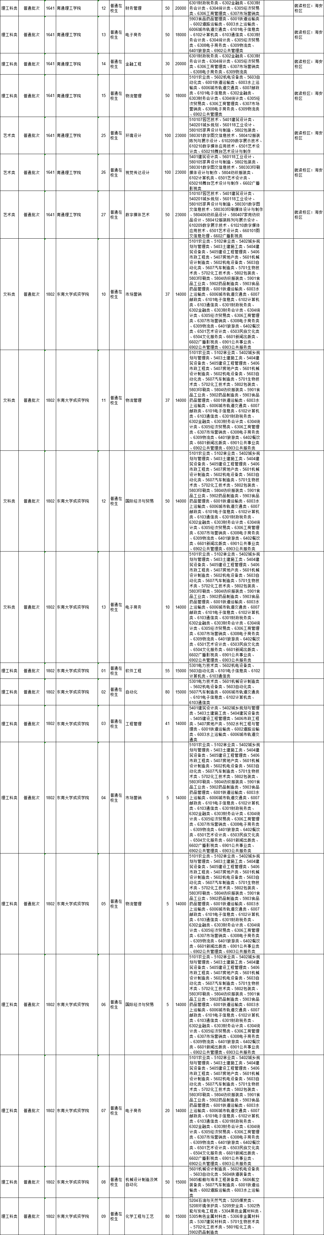 2021年江苏省普通高校“专转本”专业计划表(按接收院校排列)