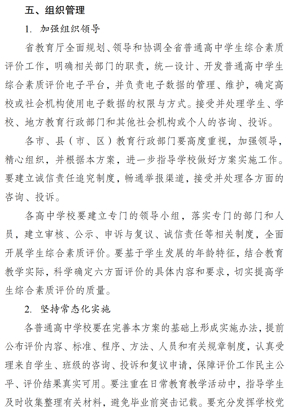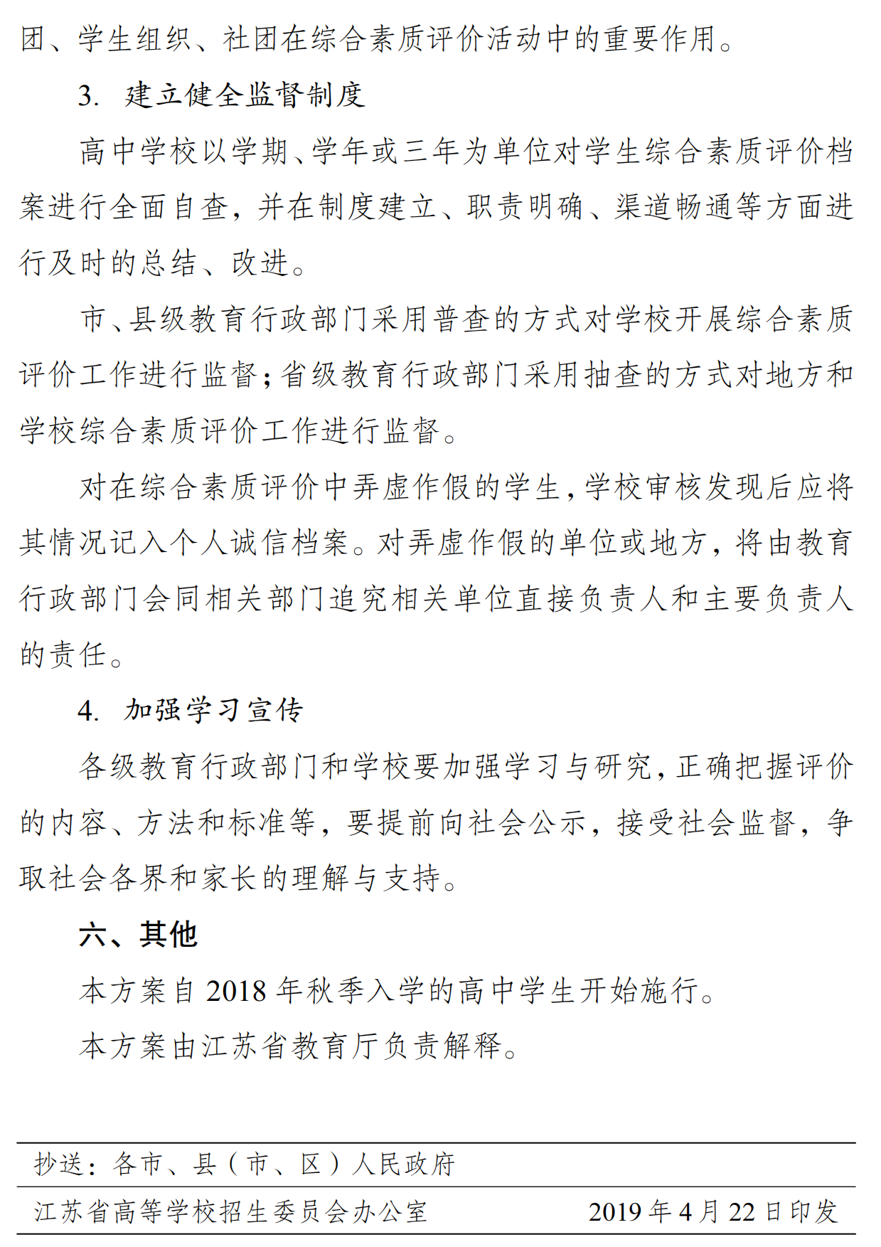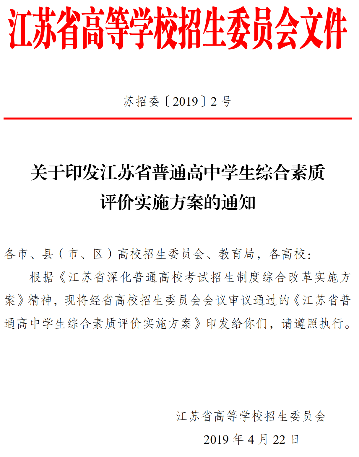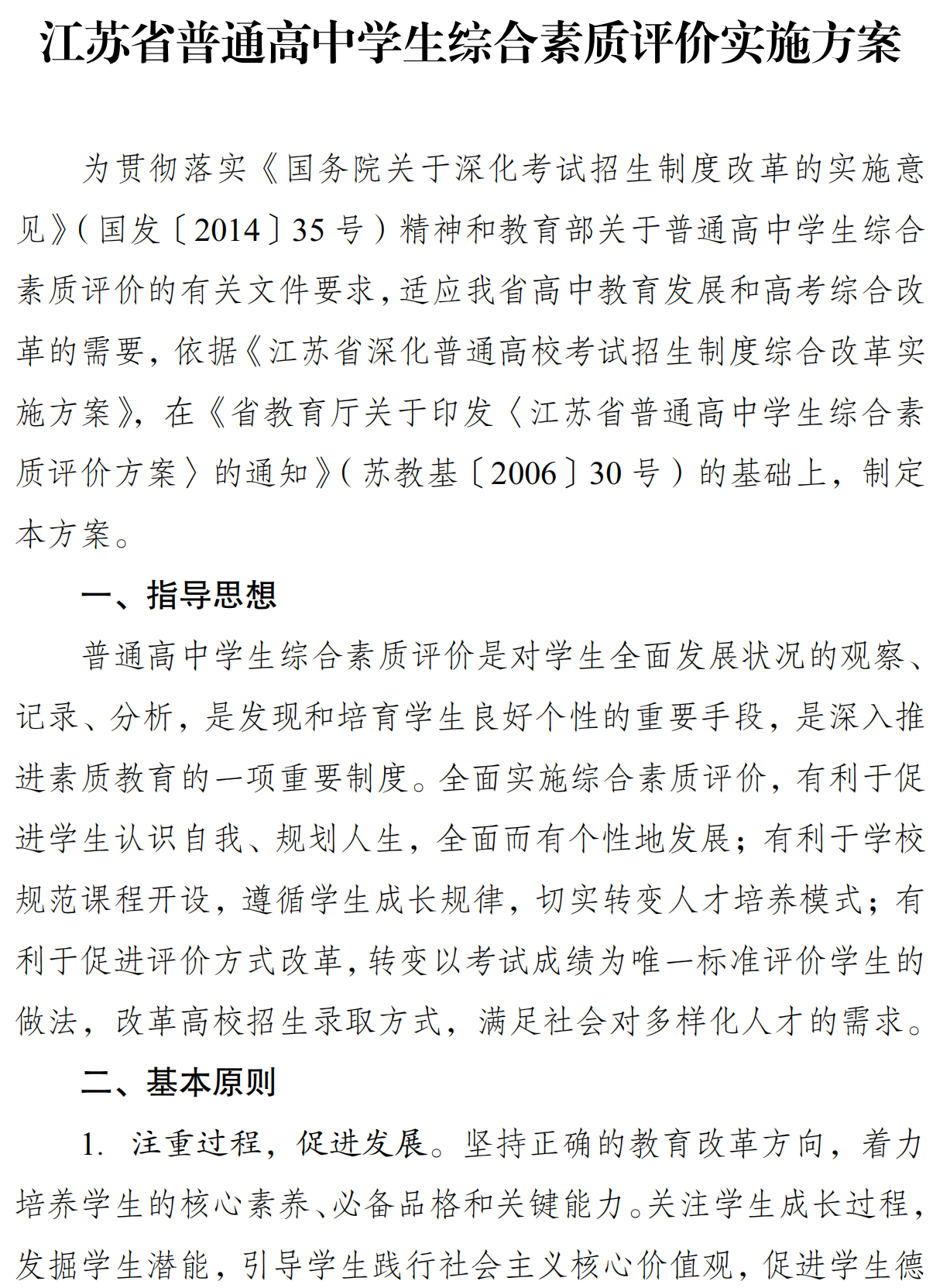 关于印发江苏省普通高中学生综合素质评价实施方案的通知