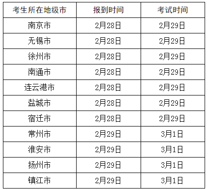 1.各地级市考生按下表规定的时间进行报到、考试: