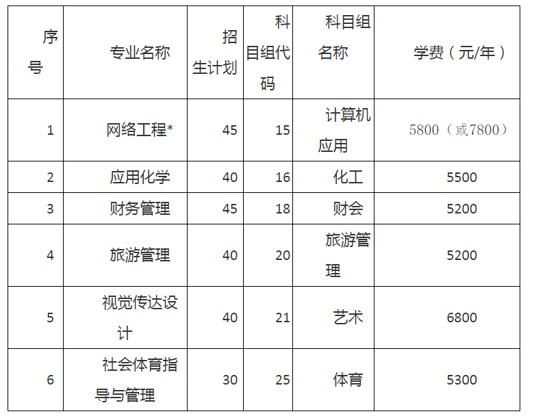 注:网络工程专业拟定为嵌入式培养,学费为7800元/年,以省教育厅审批公布信息为准。