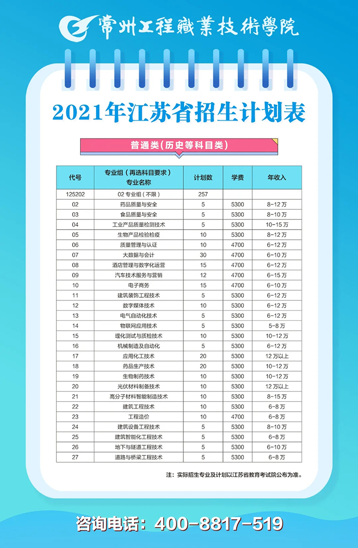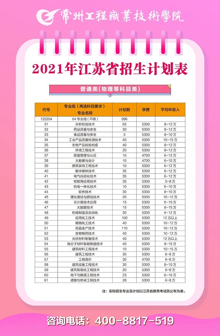 常州工程职业技术学院2021年高考招生简章