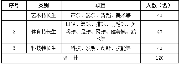1.学校在2020年高职院校提前招生中拟招收有艺术、体育和科技特长的考生。特长生计划包含在高职院校提前招生总计划内,具体计划为: