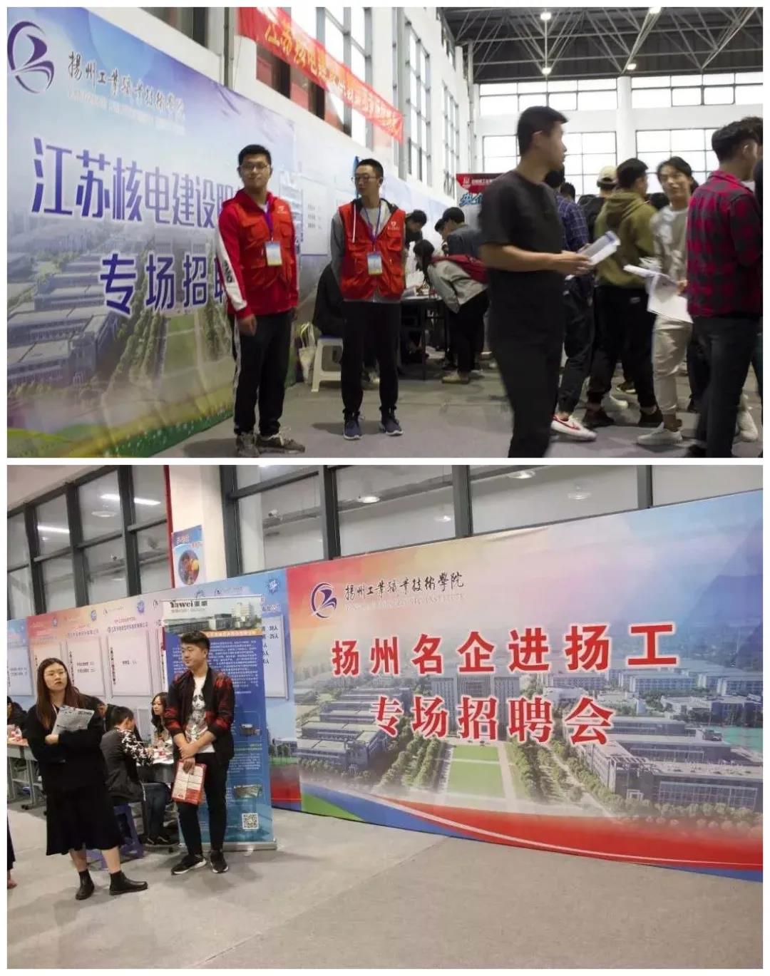 学校每年举办数百场大中小型招聘会,特别是近年来连续举办江苏核电建设职教集团专场招聘会、石化央企进扬工和扬州名企进扬工等专场招聘会,深受毕业生和知名企业的欢迎。学校与中石化、中核集团、上海大众等大型国有企业,华为、腾讯、阿里巴巴、三菱等行业领军企业以及扬州国家高新技术产业开发区、广陵经济开发区等诸多国家级、省级经济开发区保持着长期紧密的合作关系。根据江苏省招就中心数据显示:我校毕业生自身发展满意度位居全省第二,毕业半年后平均薪资水平位居全省公办高职院校第四,高质量就业指数位居全省第六。