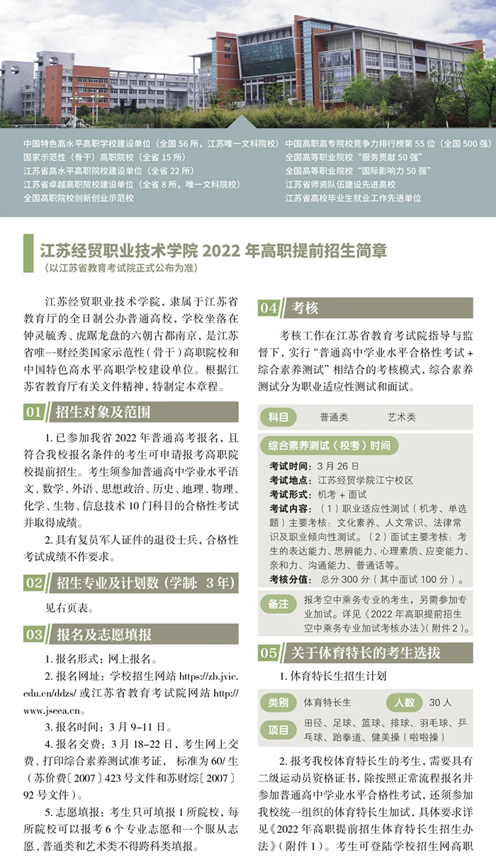 2022年江苏经贸职业技术学院提前招生简章