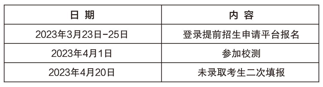 已参加2023年普通高考报名,且符合院校报名条件的考生均可申请报考高职院校提前招生。考生须参加普通高中学业水平语文、数学、外语、思想政治、历史、地理、物理、化学、生物、信息技术10门科目的合格性考试并取得成绩。合格性考试不符合要求的考生,须于规定时间内到当地县(市、区)招生考试机构办理相关合格性考试科目报名手续,并按要求参加考试。