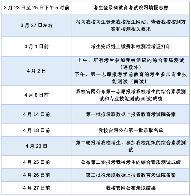 2023提前招生考核方式为校测,内容为语文、数学、外语综合知识,其中外语语种仅限英语、日语;第一专业志愿报考学前教育的考生加试专业技能,内容为语言能力测试、音乐素质测试、形体动作测试三项。