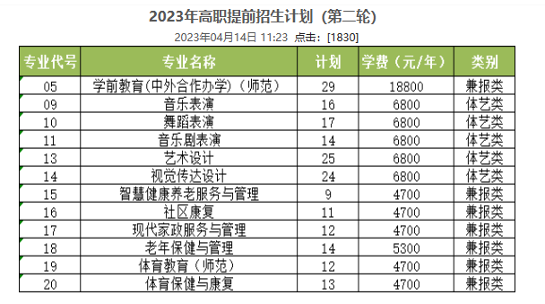 徐州幼儿师范高等专科学校2023第二批提前招生计划