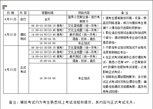 四、考试时间安排