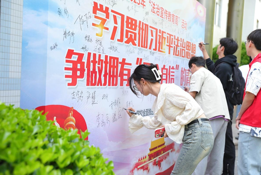 建强活动阵地,校地合力举办“法治宣传教育周”。苏州农业职业技术学院积极联系属地司法行政部门,联合苏州市姑苏区人民法院、姑苏区人民检察院、姑苏区司法局、姑苏区司法局虎丘司法所等共同举办法治宣传教育周活动。在启动仪式上,学校与苏州市姑苏区司法局本着优势互补、资源共享的原则签订了《法治宣传教育校地合作协议》,共同开展法治宣传教育活动设计、基层依法治理情况调研、青年大学生法治宣传教育成效评价等工作。学校各级各团支部、各班级围绕“学习贯彻习近平法治思想,争做拥有‘四个自信’的青少年”主题,组织策划了模拟法庭、法治辩论赛、法律法规知识竞赛、法治手抄报征集等形式多样的法治文化活动,共同推动习近平法治思想入脑入心入行,引导青年大学生尊法、守法、用法。