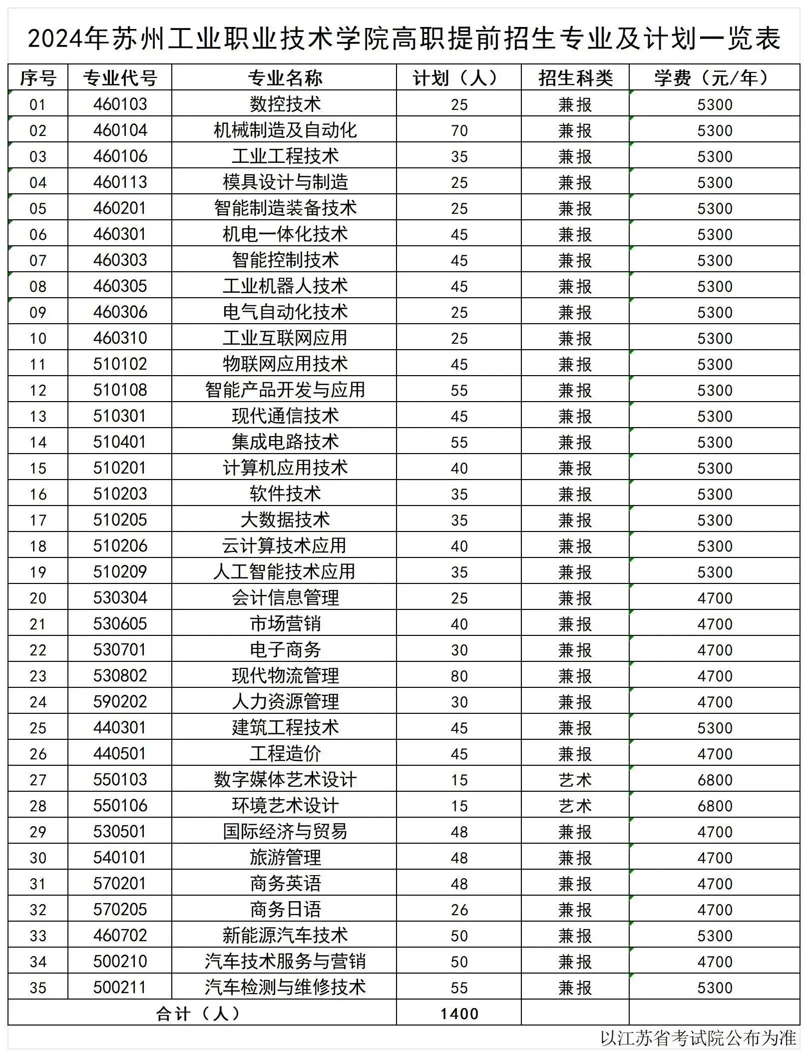 共投放1400个计划,招生专业(含专业名称、专业代码、学制等信息)及招生计划以省级招生主管部门下达为准。