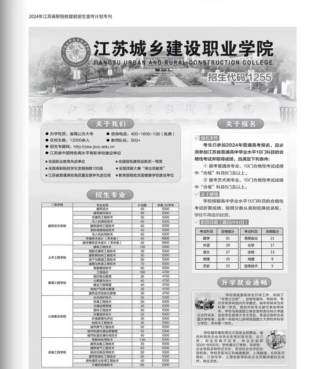 江苏城乡建设职业学院2024年提前招生简章