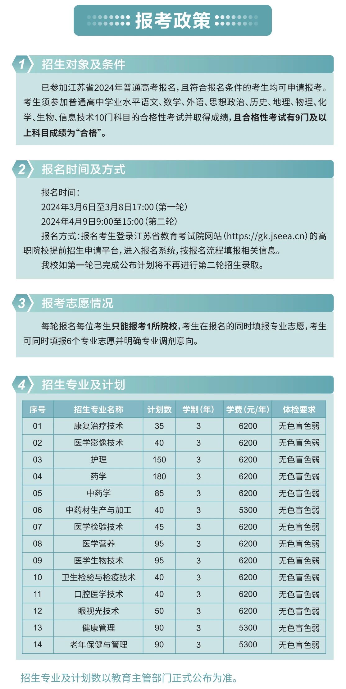 苏州卫生职业技术学院2024年提前招生简章