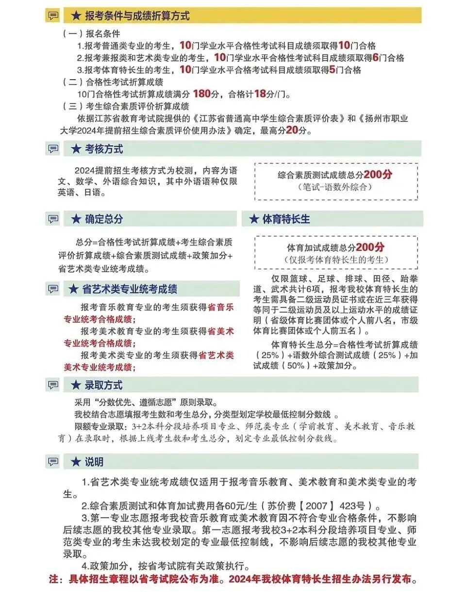 扬州市职业大学2024年提前招生简章