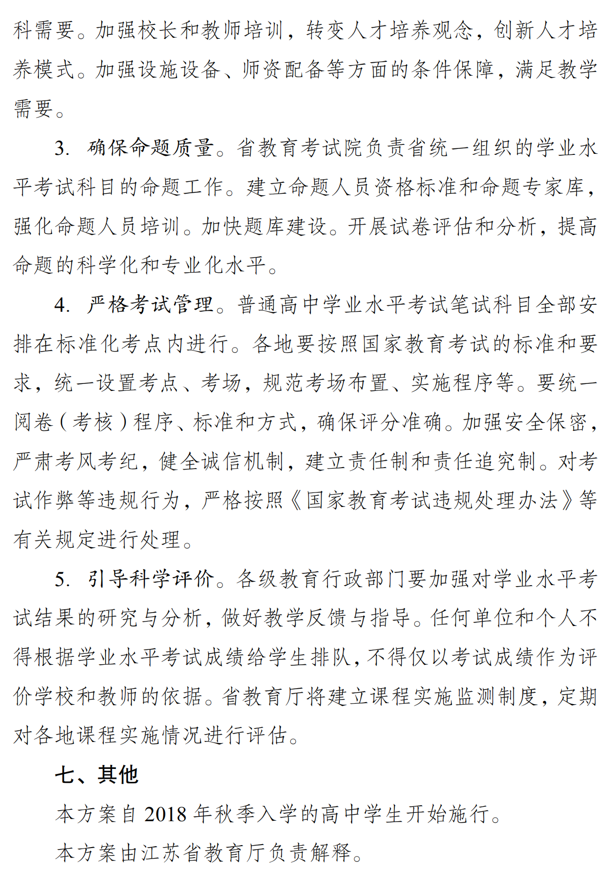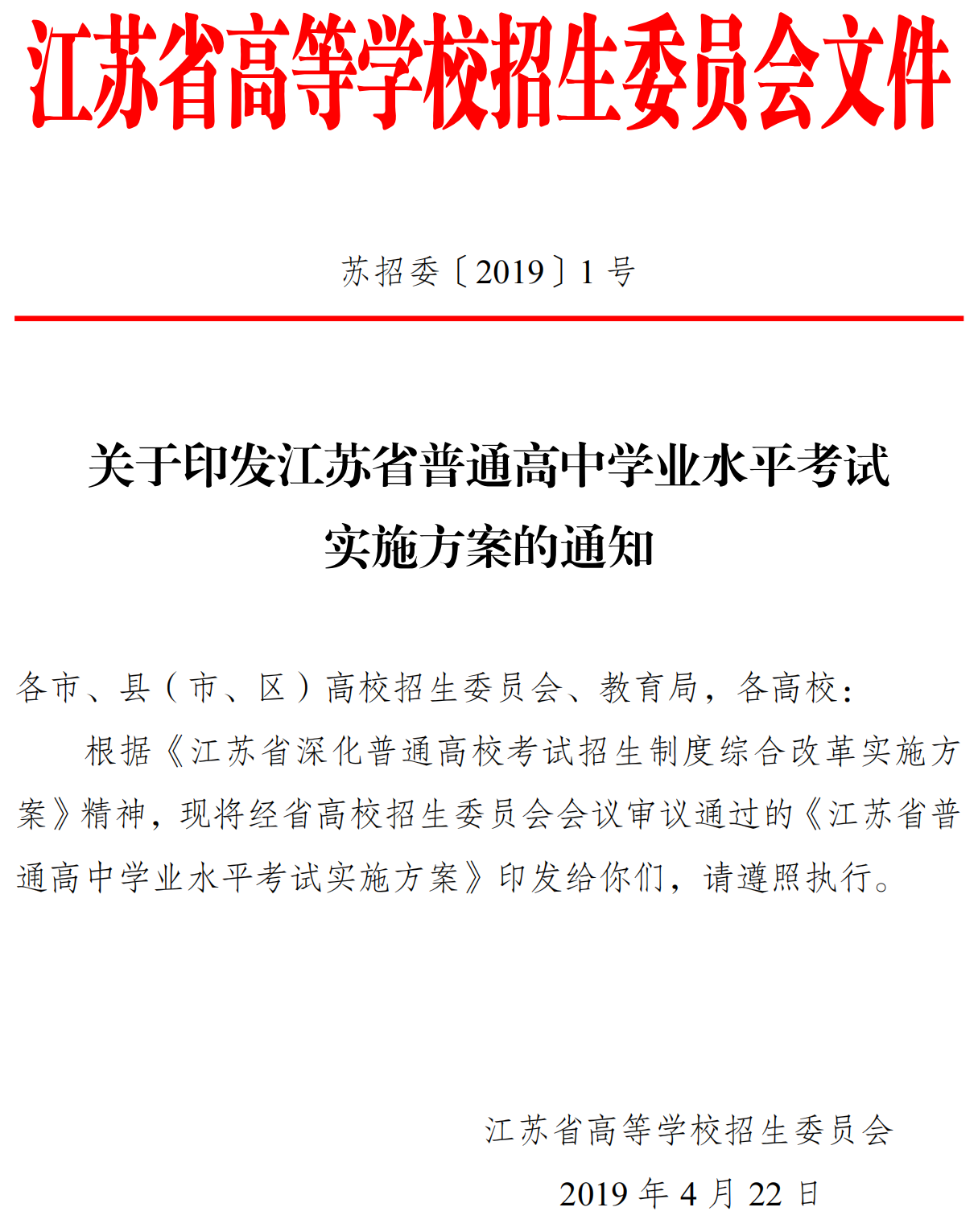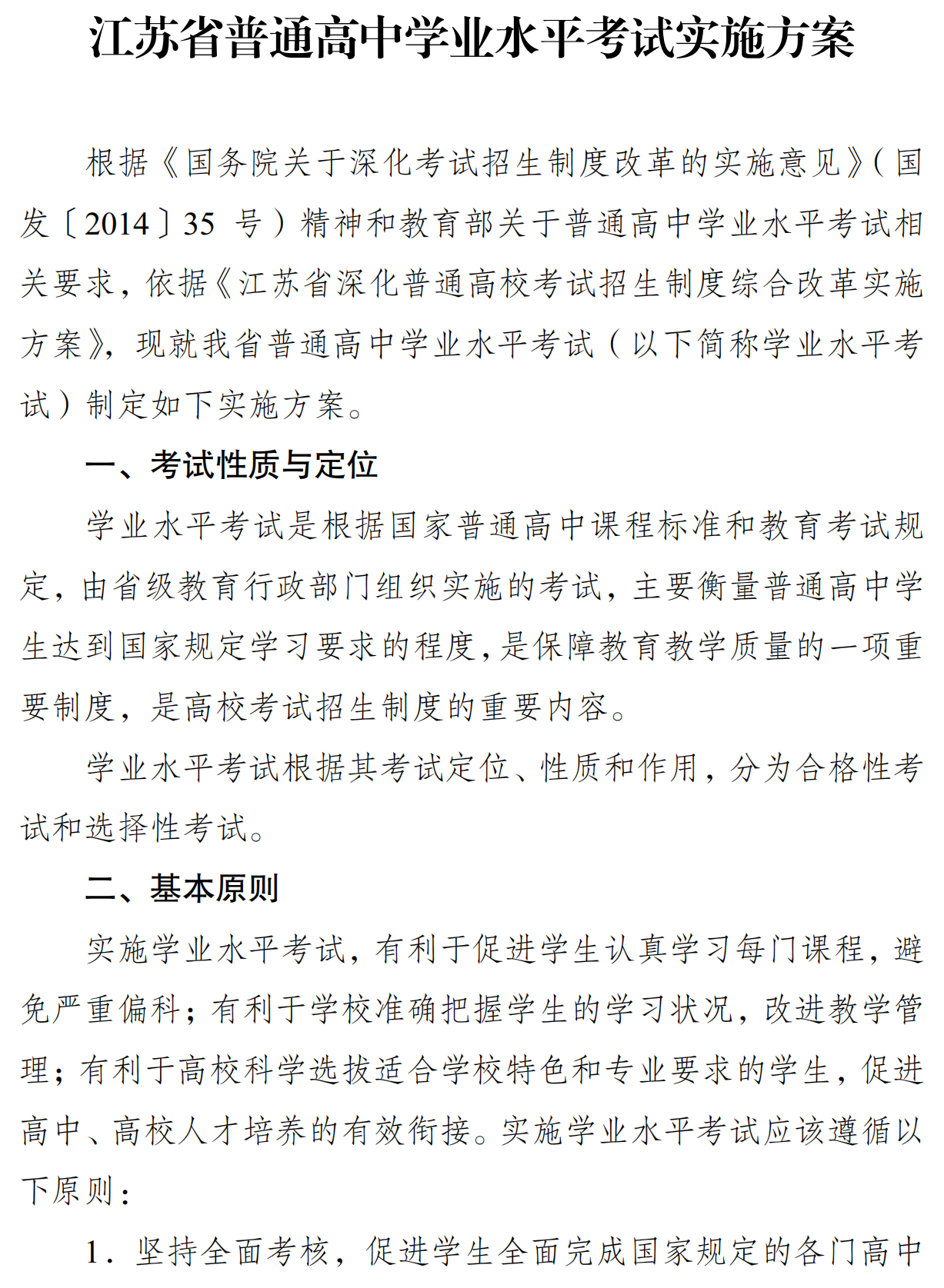 关于印发江苏省普通高中学业水平考试实施方案的通知