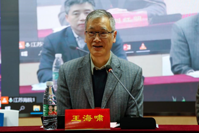 王海啸教授代表江苏省高等学校外国语教学研究会对江苏海事职业技术学院长期以来给予江苏省高职英语教学的支持表示感谢,面对新时期、新形势,学会将进一步发挥凝聚学术资源的作用,为江苏省外语教学做出更大、更积极的贡献。