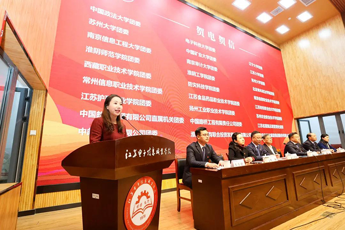 江苏省工业和信息化厅、南京大学、苏州大学、南京信息工程大学、中国政法大学、电子科技大学、中国矿业大学、防灾科技学院、西藏职业技术学院、南京信息职业技术学院、常州信息职业技术学院、扬州工业职业技术学院、中国邮政集团有限公司、中邮建技术有限公司、江苏省灌溉总渠管理处、淮安市国有联合投资发展集团有限公司等40余家单位团委发来贺信贺电。