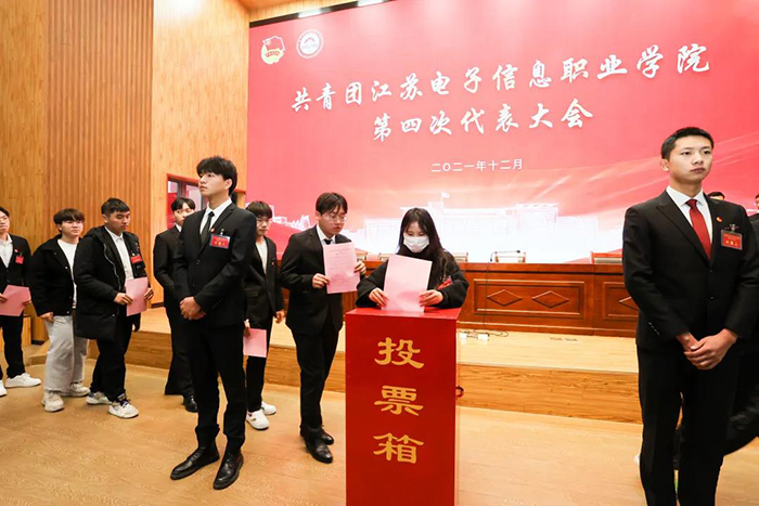 各代表团分组讨论了共青团江苏电子信息职业学院第三届委员会工作报告,酝酿讨论共青团江苏电子信息职业学院第四届委员会委员候选人建议名单,并选举产生了由9名同志组成的共青团江苏电子信息职业学院第四届委员会。