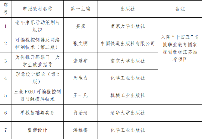 我校入选“十四五”职业教育江苏省规划教材情况一览表